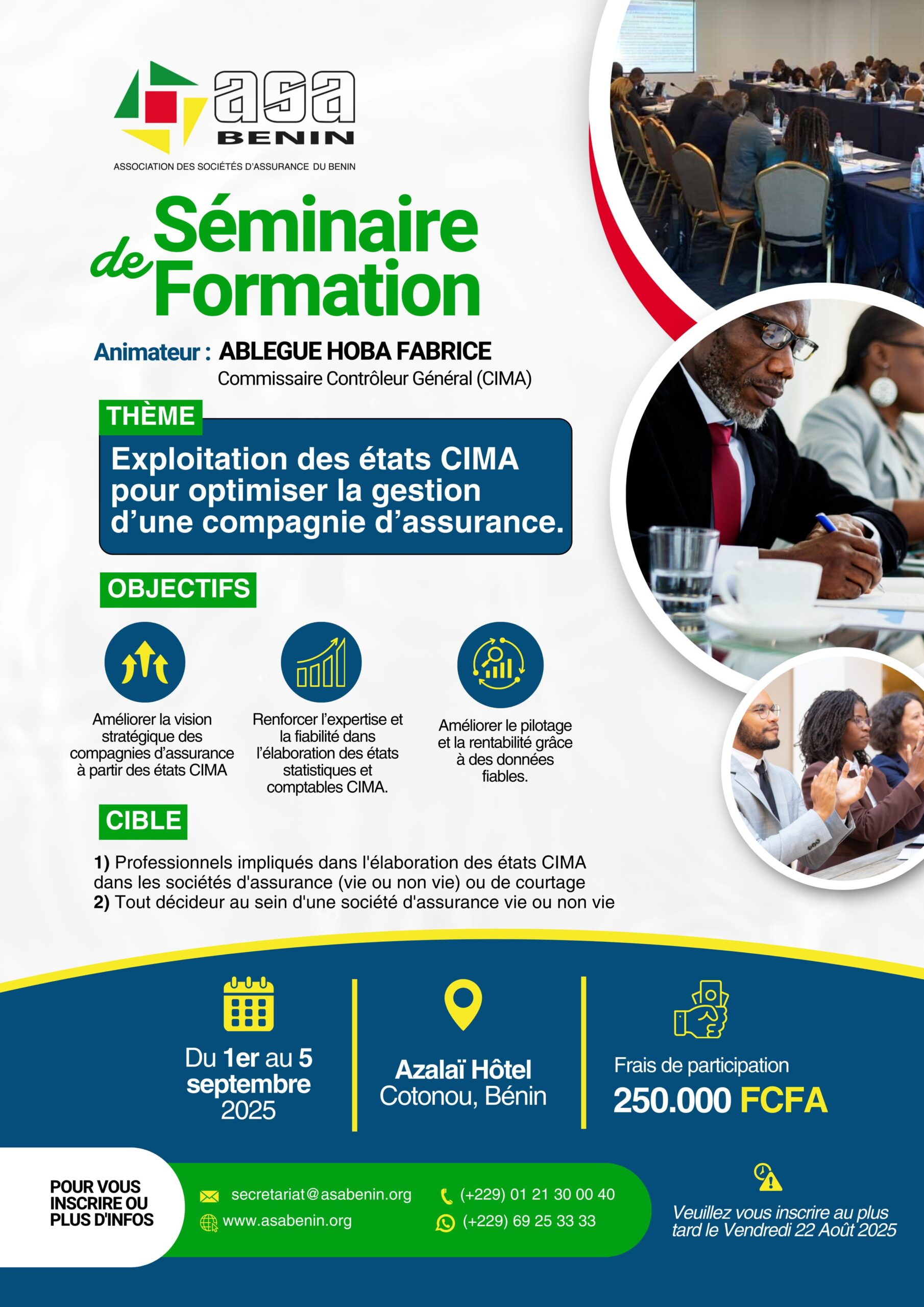 Durant cinq jours, du 1er au 5 septembre 2025, les professionnels du secteur des assurances se sont donné rendez-vous à Cotonou pour un séminaire de formation organisé par l’Association des Sociétés d’Assurances du Bénin (ASA Bénin). Placé sous le thème « Exploitation des états CIMA pour optimiser la gestion d’une compagnie d’assurance », l’événement a […]